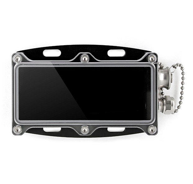 The WaterBox101A is machined out of black anodized aluminum, and has four oval mounting holes for easy surface attachment. The enclosure features a water-tight communication access plug with chain attachment, stainless steel probe outlet and a clear plastic cover.