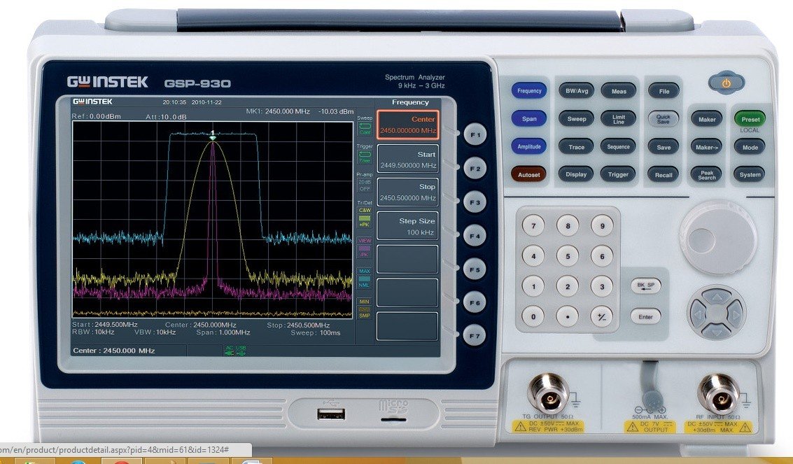 GSP-930 is a 3GHz Spectrum Analyzer designed upon a new generation platform. The high stability, large screen display, light weight and compact size of GSP-930 benchmark a new standard for 3GHz spectrum analyzer in the market. Its advanced features, Spectrogram and Topography, greatly expand the application range and elevate the importance of a spectrum analyzer in the role as the irreplaceable RF analysis instrument.